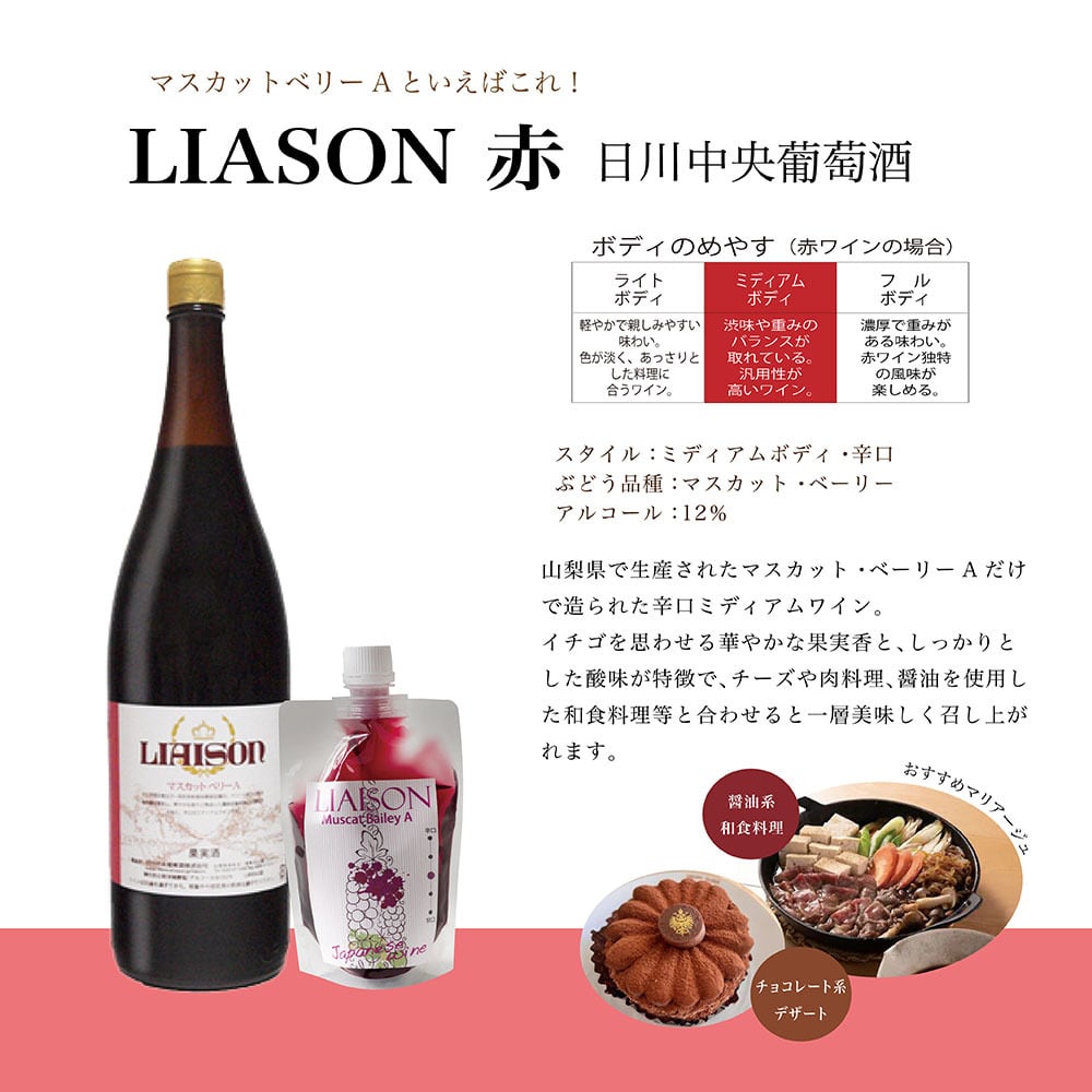特別なひとときを演出する【日川中央葡萄酒】リエゾン(赤)スパウトパック