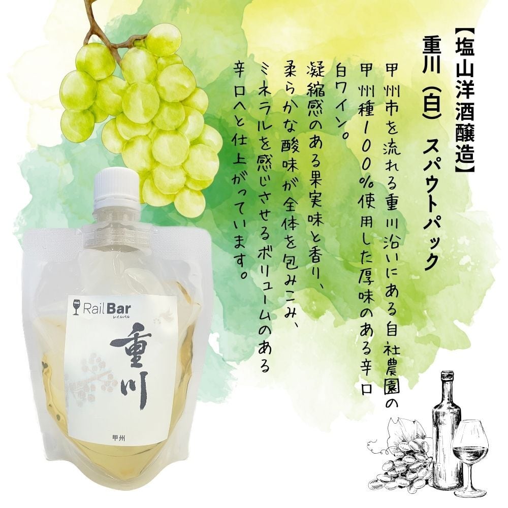 【塩山洋酒醸造】重川(白) スパウトパック(175ml) 辛口 飲み比べ パウチワイン キャンプ 女子会 飲みきり